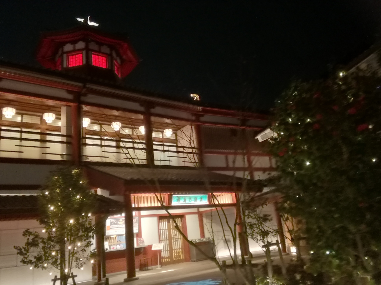 道後温泉本館から歩いて2分ほどに飛鳥の湯という外湯があります。椿の湯と二か所ありますが、半露天風呂のある飛鳥の湯に入りました。600円で一階の入浴のみです。2階の大広間まで使用すれば1250円,個室利用で1650円,家族風呂まで利用すると3650円となります。一昨年に建てられただけあり外観もお風呂もとても綺麗でした。本館は大勢の観光客があふれてイモ洗い状態でしたが、こちらはゆっくり入れました。道後温泉の楽しみが増えました。