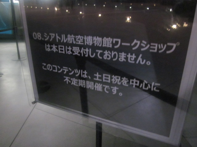 ワークショップも非定期開催、フライトシュミレーターも何か管轄が違うようで、別料金(しかも高い;一応、無料体験できる有料入場者対象の抽選枠も少しだけ用意されていますが…)、その他の展示もハイテクを駆使しているのか何かよく解らないような、絵に描いた飛行機をスマホみたいなのを操作して動かしたり、紙飛行機を飛ばしてみたり、怪しげな塗り絵のキャラを携えて、CA体験をしてみたり、と、正直、面倒臭い内容ばかりで、しかも大して面白くありません。現状の有料ゾーンの内容では、お子様の方だとそれなりに楽しめるかと思いますが、大人の方には全くお勧めできませんので、無料ゾーンからB787を眺めて、シアトルテラスのどこかのお店での飲食代に充てて過ごす方が、ずっと充実した時間を過ごせるかなと思います。