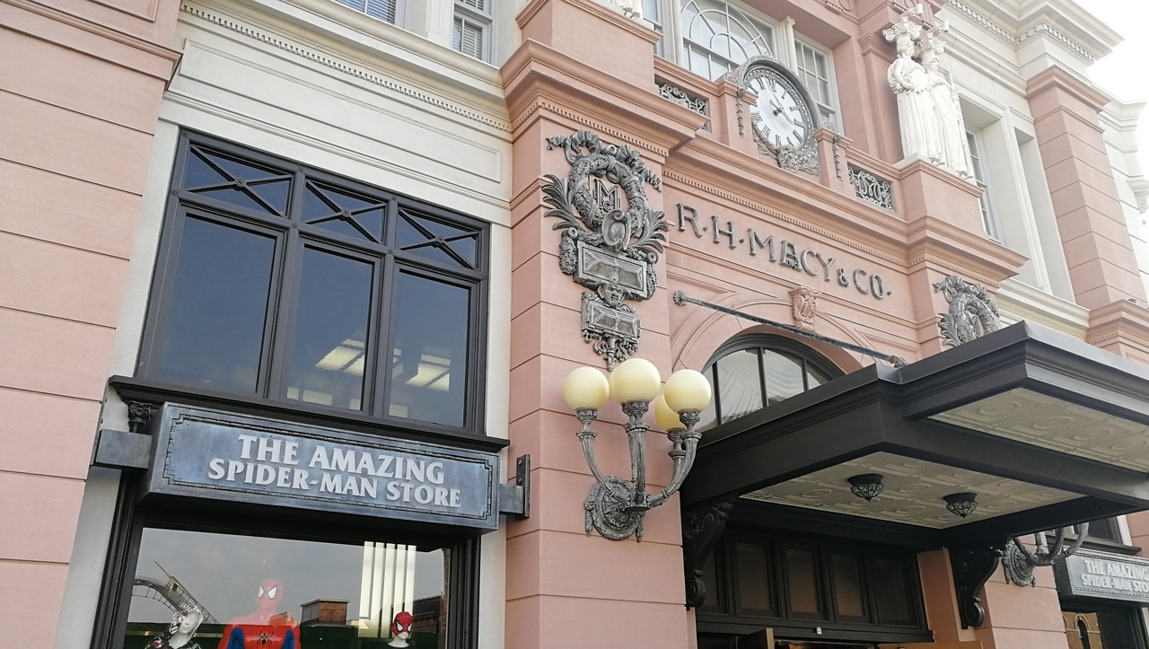 アメージングスパイダーマン・ザ・ライドを出てきたところにあります。メインのお土産屋さんたちが可愛いキャラクターグッズに占拠されつつありますので、スパイダーマン好きはこちらで抑えとくほうがいいです。男の子には不動の人気があります