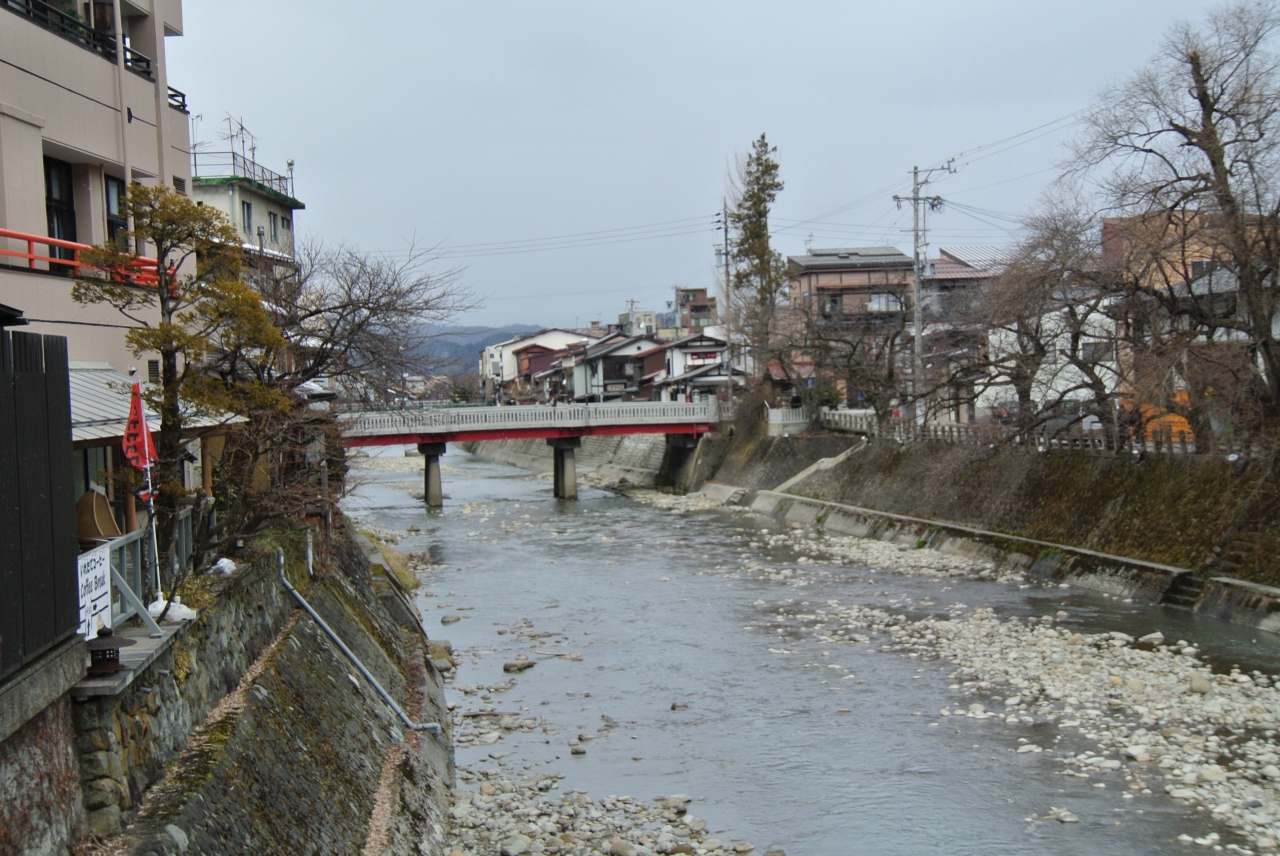 高山の伝統的建造物群保存地区の西側を南北に流れる川です。それほど大きな川ではなく、必ずしも川の両岸に古い建物が並んでいるというわけではないですが、なにか心ひかれる風景が広がっていました。心が和む景色です。