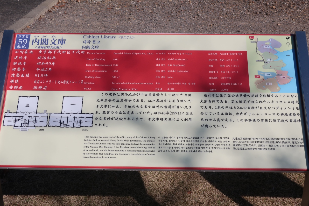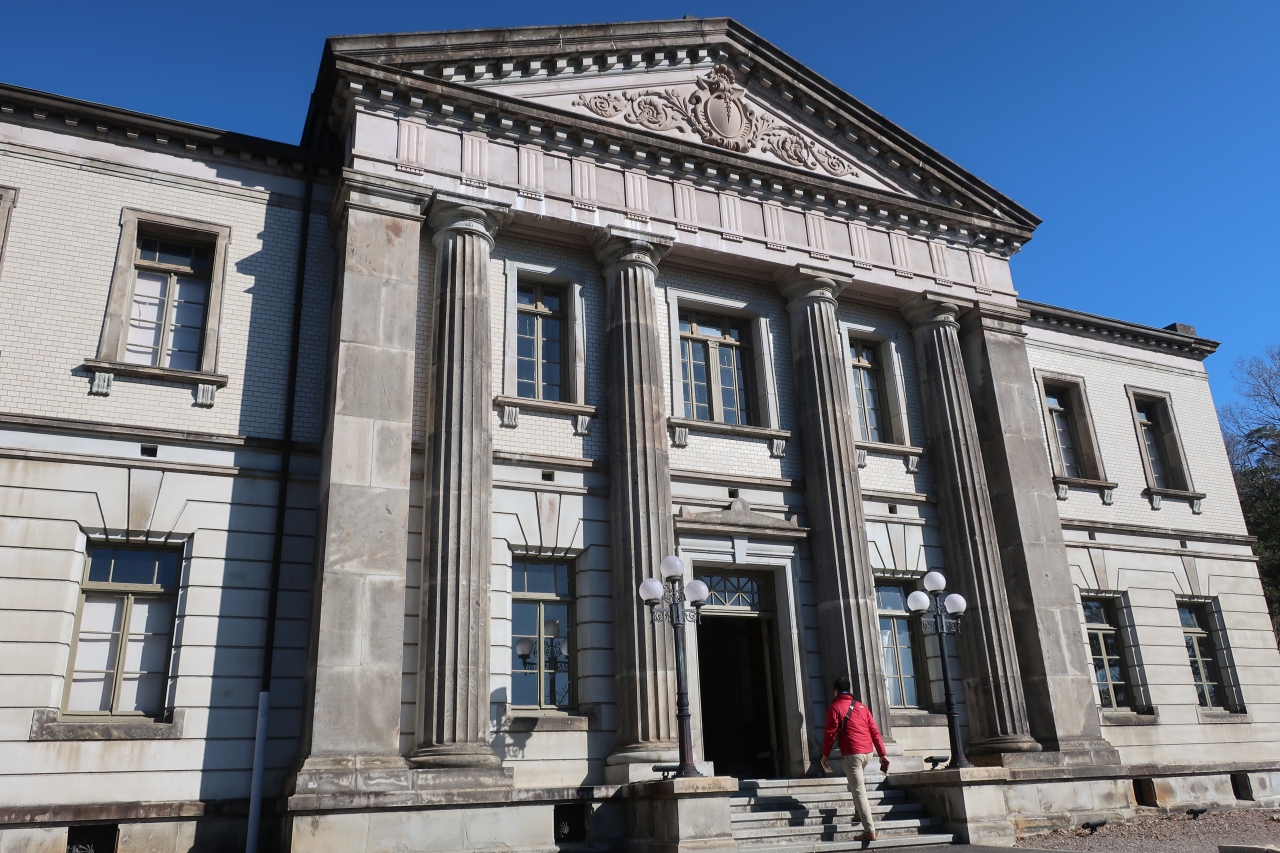 明治村5丁目の一番北側に位置するところに内閣文庫はあります。重厚な石造りの建物は石柱とアーチからなる均整の取れたバロック調の建物で、ヨーロッパ等にある建物と見間違うほどです。内部では世界各地にある名建築のミニチュアが多数展示され、建物も見事ですが、こちらも見物です。