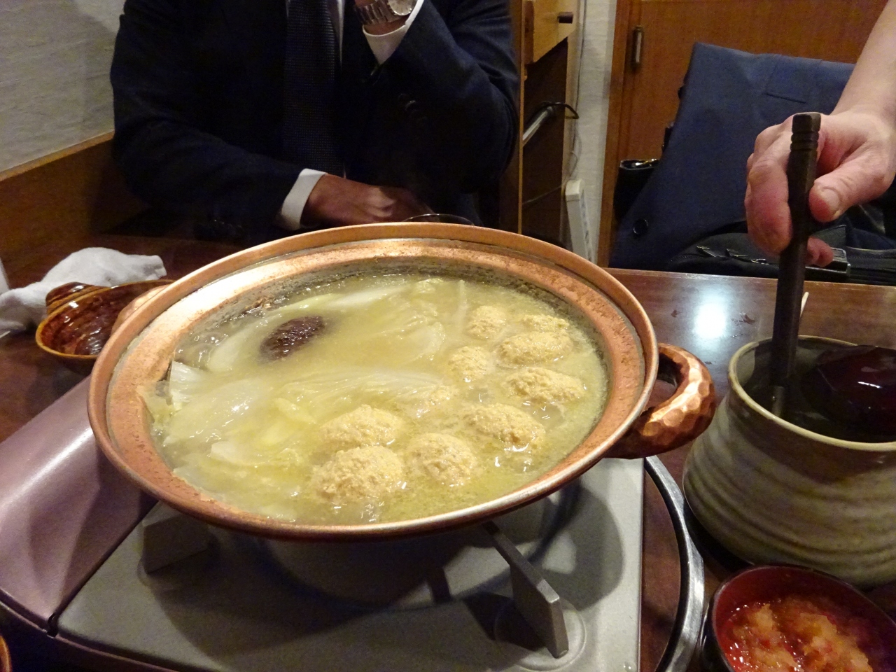 夜の部に3名で伺いました。お店には夕方5:30にならないと入れません。この日は1階のテーブル席を予約しましたが、2階のお座敷席もあります。混雑しているので予約なしでは入れないと思います。「鳥スープ炊き鍋」のコースを食べました。料理は7000円ほどですが、ビール、日本酒、ハイボールをたくさん飲んだほか、親子丼まで食べたため一人1万円以上は軽くかかりました。鍋の肉は、秋田比内地鶏と名古屋コーチンの食べ比べのほか、ハツやレバー、つみれもありました。最後はご飯を鍋に入れておじや風に食べます。とても美味しかったです。でもちょっと高かったかな。