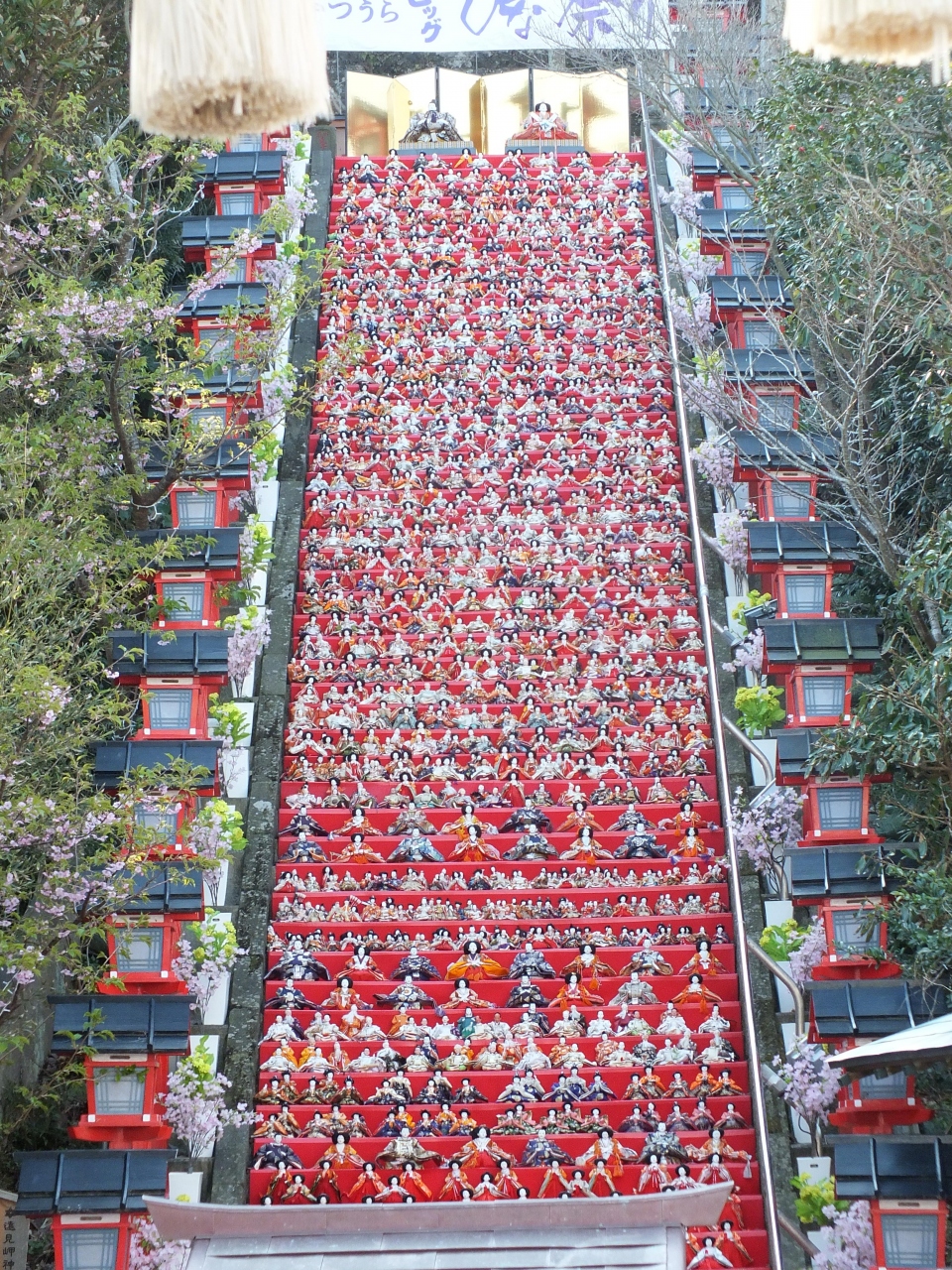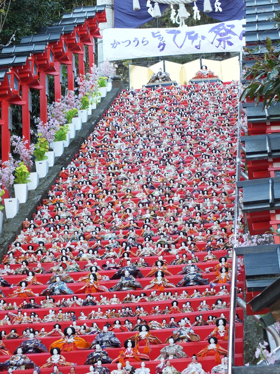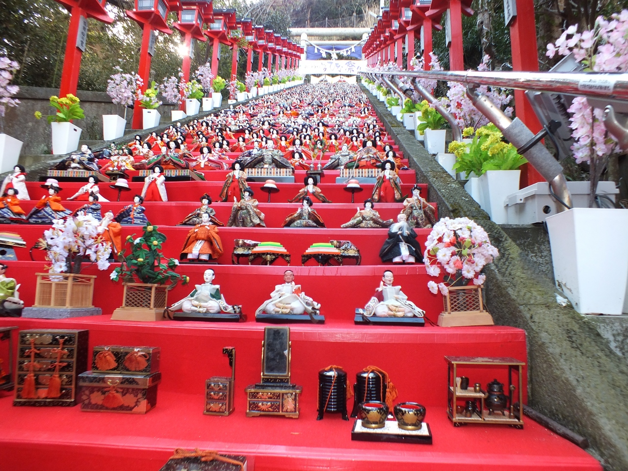 暇祭り会場の中で文化センターと並び有名なポイントです。朝市に行きながら見ることも出来ます。9時オープンですがその前に行くと並べている所も見れます。兎に角階段全てにひな人形が並べられ圧巻な光景です。また、ひな祭りの時に遠見岬神社の御朱印をもらう場合は、9時に成ったら先に御朱印をもらいに行った方が良いと思います。じゃないと待たされると思いますよ。