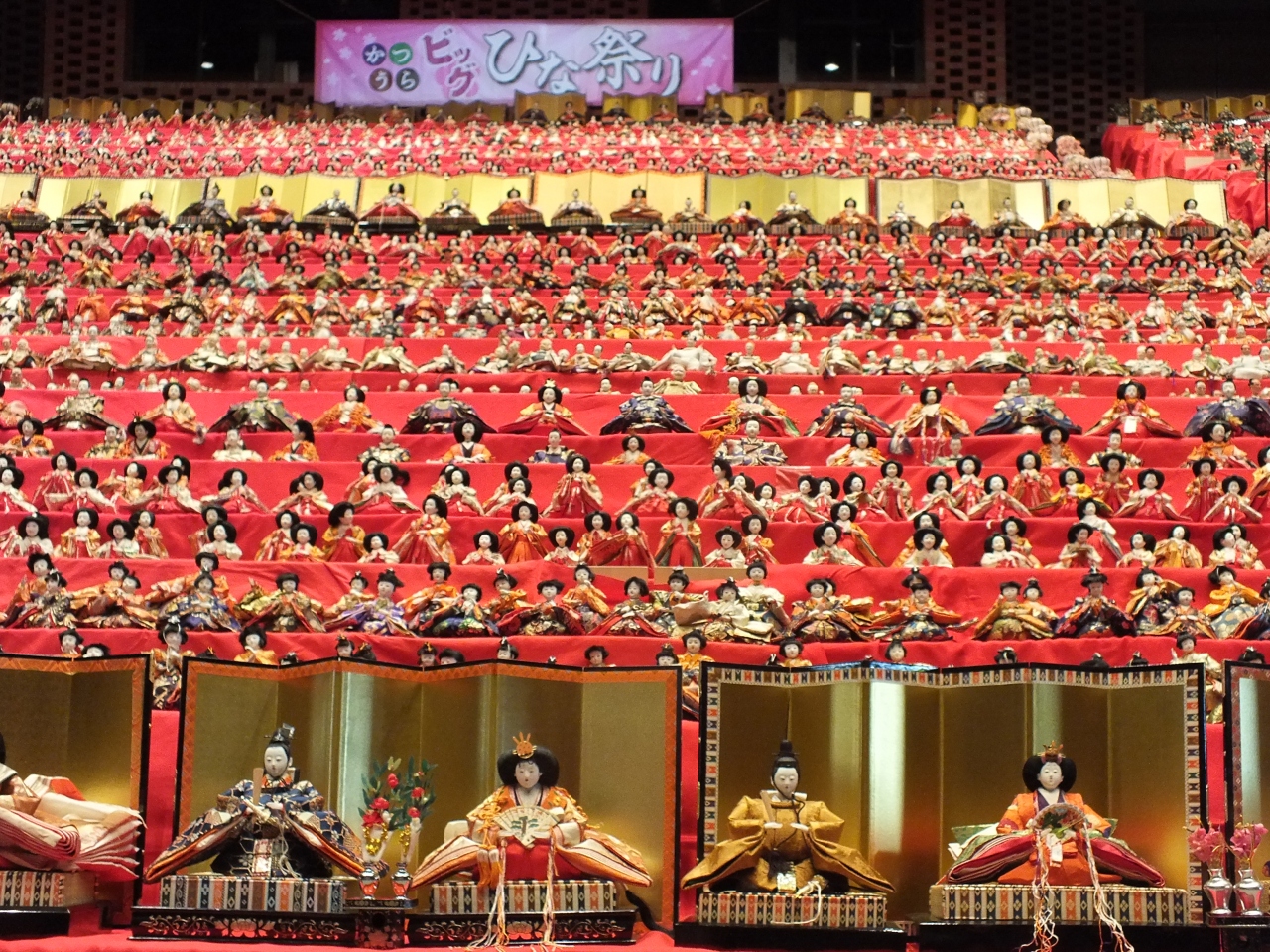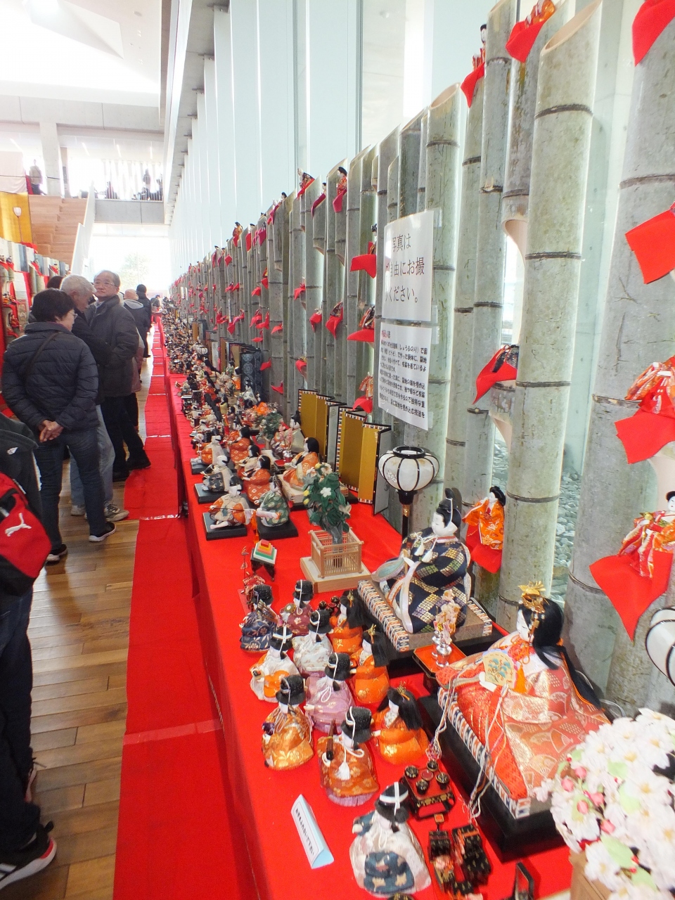 勝浦ひな祭りのメイン会場、唯一入場料が必要です、高台に有り駐車場からのシャトルバスで移動みたいです。私が泊まった勝浦ヒルトップからは徒歩で行けましたが。会場は多くのひな人形が飾られていて、古い物から新しい物、珍しいひな人形もありました。