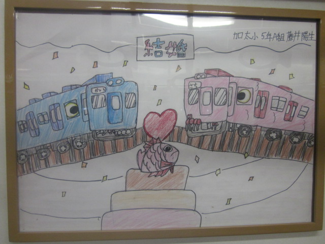 関西を代表する私鉄の一つの南海ですが、個性的な列車も色々と走っていて、ビジュアル的にも楽しませてもらえることも多いですね。今回は、和歌山港に向かう際、和歌山港線に乗車したのですが、その時の車両が、何と加太線メインに運用されている「めでたいでんしゃ さち」(赤い方)でした。内装もおめでたい雰囲気で、子供たちのおめでたい絵(?)なども多数飾られていて、短時間の乗車ではありましたが、とても幸せな気持ちになれました。因みに、帰りは和歌山市駅の傍でもう一匹(?)の「めでたいでんしゃ かい」(青い方)にもお会いすることが出来て、二重の喜びに浸ることが出来ました!