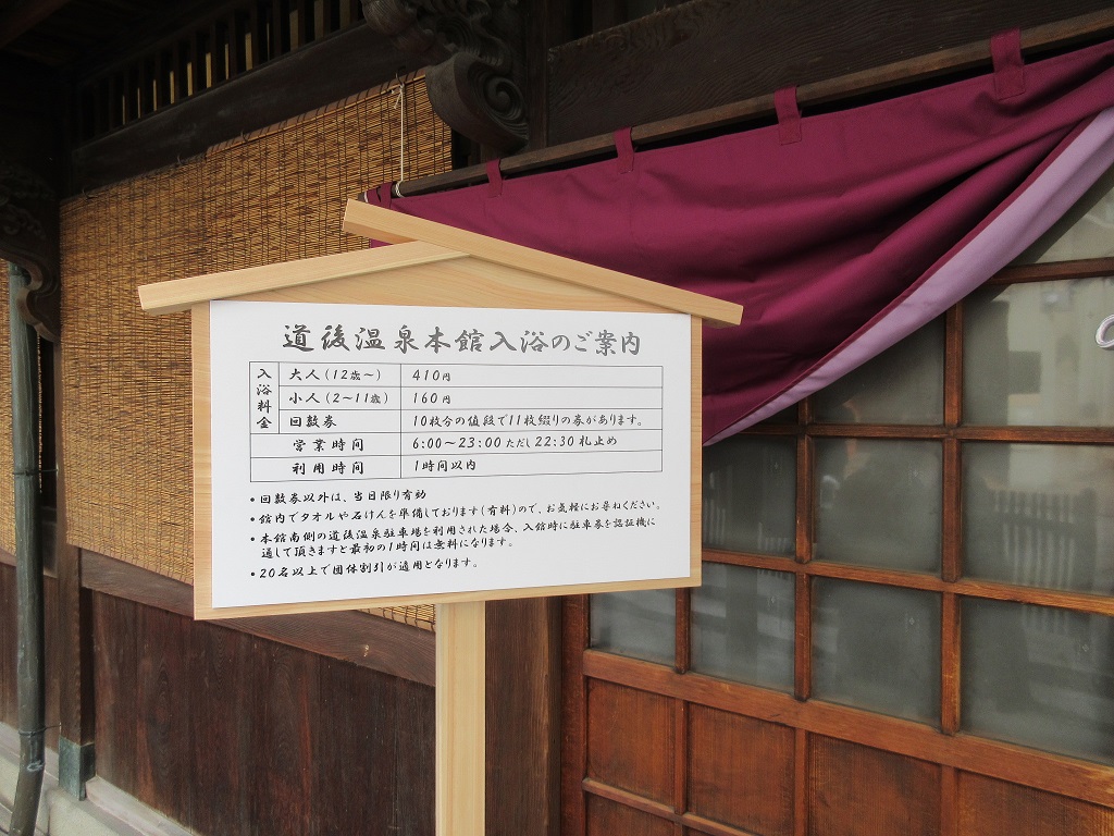 久しぶりに松山の道後温泉を訪れました。正面の歴史を感じる佇まいは一見の価値があります。改修工事をしているようで、正面からは入館できずに、正面左手に回りこんだ場所から入るようになっていました。通常のタオルはもちろん、バスタオルも借りることができました。思ったより浴室は狭くて、あまり長居はできませんでした。