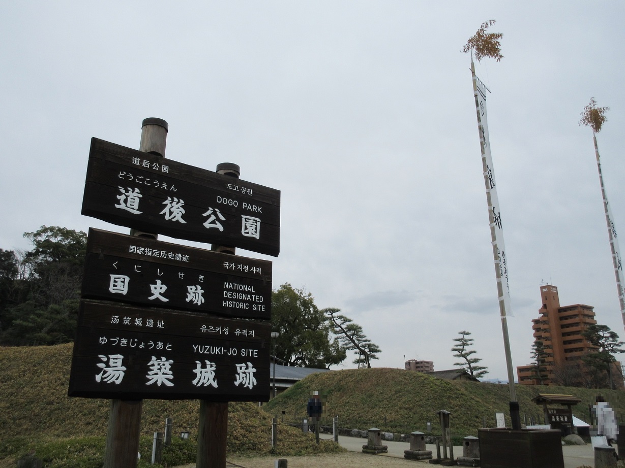 バスだと道後温泉駅の一つ手前の「道後公園」で下車すると、こちらの中世の古城「湯築城」跡を整備した公園を見学することが出来ます。一部には武家屋敷も復元されていました。土塁など中世城郭の形を今に伝える貴重な史跡とのことで、散策すると往時の姿が想像できて、思った以上に楽しめました。