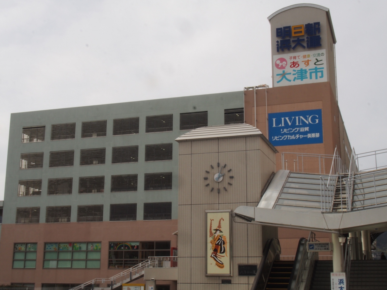 浜大津駅の2階の改札口の近くから皇子山陸上競技場へと続いている道が大津絵の道です。道沿いには大津にゆかりのある絵画タッチの絵がビルの壁や地面などにはめ込まれて続いています。この道のコースは途中に三井寺も近い場所にあるので、この道を歩く観光客も多いので、見るチャンスも多そうです。