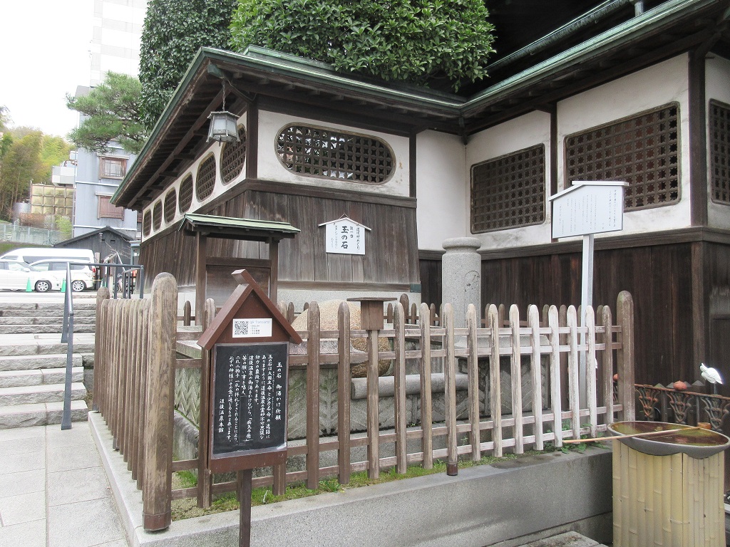 道後温泉本館の入浴するための入り口が、正面向かって左手に回り込んだ時、脇に見えたのがこっちらの「玉の石」という石で、神様のように回りが木の枠で囲まれて祀られていました。説明によると国造りの際に道後温泉で病を治癒した神様にちなむエピソードがあるようで、今では病気平癒の神様として祀られているとのこと。柄杓でお湯を組んで石にかけている方もいらっしゃいました。