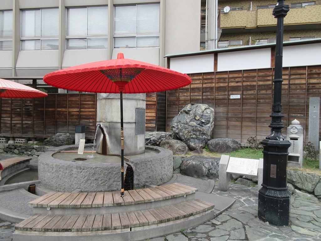道後温泉園の駅前広場にある「坊ちゃんからくり時計」の横に有る足湯がこちらです。足湯は鹿児島空港など何か所か利用したことがあるのですが、こちらは狭い広場の一角、しかも隣が坊ちゃんからくり時計ということもあって、視線が気になって落ち着いてつかっていられません。せめて目隠し程度でも良いので、簡単な植え込みなど考えて欲しいと思いました。
