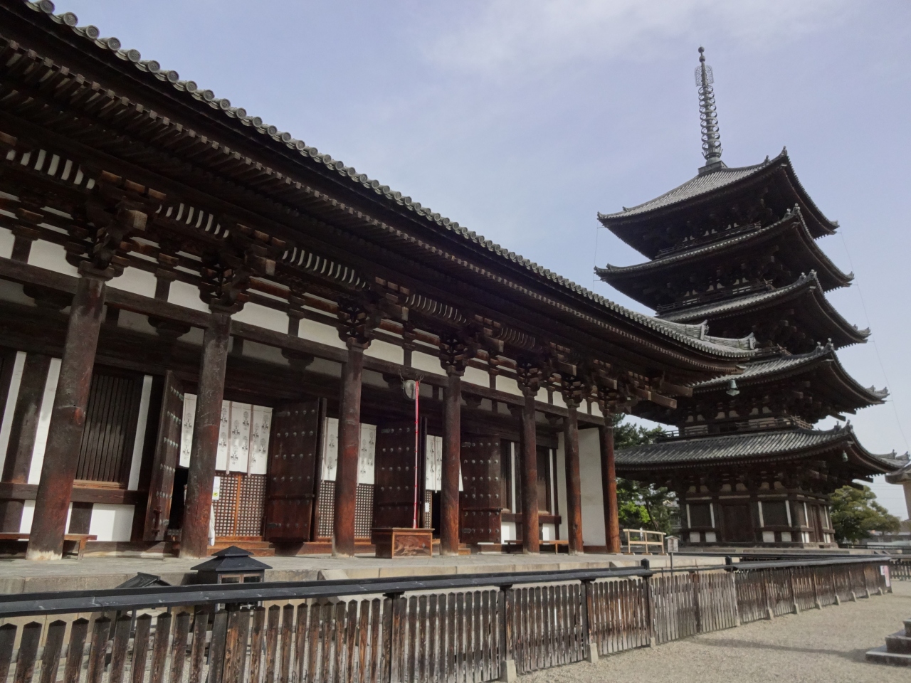 五重塔の隣に建っている御堂、東金堂と五重塔へ。この御堂の個人的な見所は何と言っても安置されている仏像、本尊の薬師如来及び日光・月光菩薩像ではなく、十二神将立像。間近で拝むことができ有難い。全てが国宝らしい。