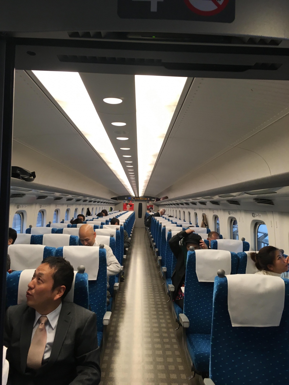新大阪から博多までは山陽新幹線。こちらは東海道新幹線よりもトンネルが多いのですが、速度などは早くて利便性はよいです。割引チケットもいろいろあるので、目的地によって選べます。東海道新幹線よりも空いていることが多いように思えました。新神戸の駅は他のJRとつながっていないので、神戸市街に出るのに地下鉄を使う必要があります。