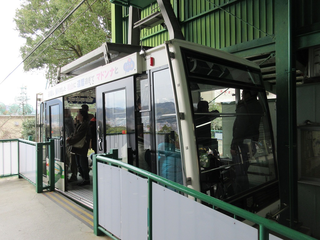 松山城には徒歩でも登ることが出来まが、時間の限られる旅行者にとってはやはりロープーウェイが便利だと思います。凡そ10分置きで運行しており、数分の空の旅ですが職員の方がちゃんと同乗して案内してくれました。雰囲気のある古風な衣装で旅情を掻き立てられました。