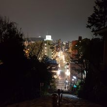 道後駅から北方をみあげると目に付くのはこちらにある神社。やたら高台にあるので何やら格式が高そうに感じる。夜行ってみたら夜景が思いのほかキレイでした。遠方にはライトがあたった松山城が見えてキレイでしたね。階段は結構急できついですよ!