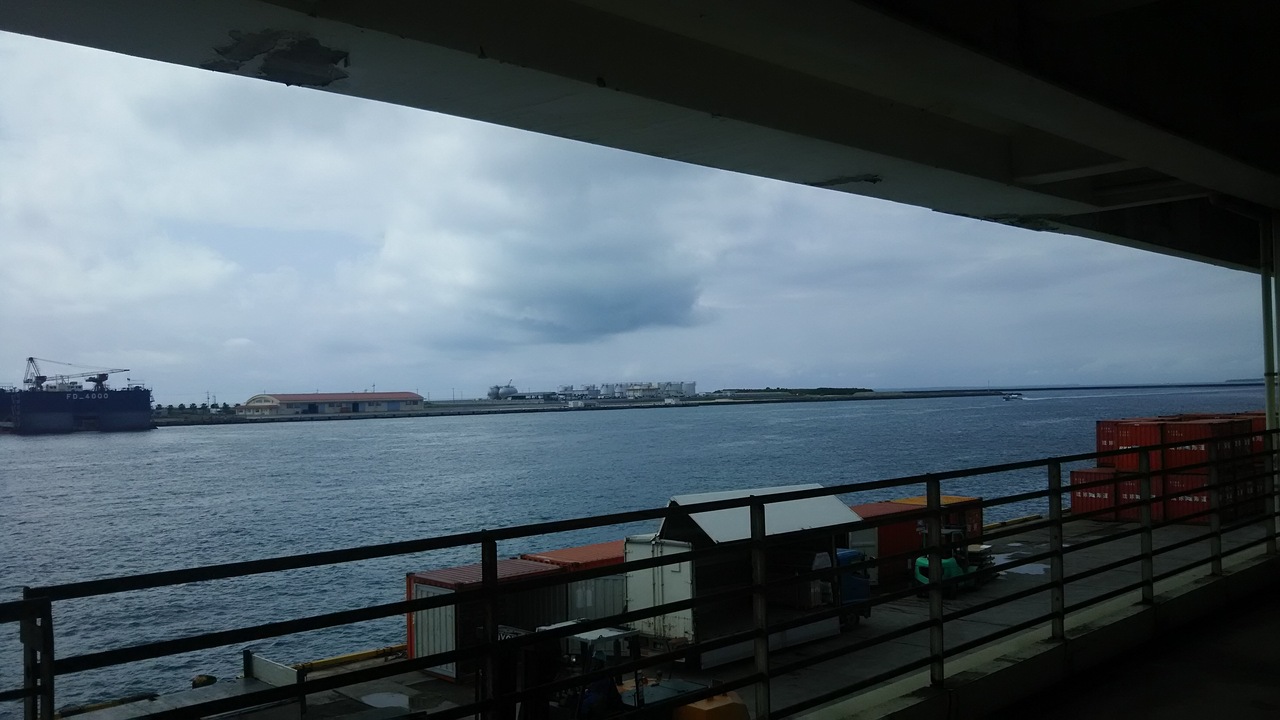 穴場の中の穴場。東横インの向かいに大型船用石垣港ターミナルがあます。定期船は既になくなりクルーズ船などが使うかなりボロい建物で石垣市の港湾課や船会社の事務所がはいります。2階に売店と食堂があり一般にも公開されており船を見ながらランチができます。メニューは豚カツや八重山そばなど。空いています