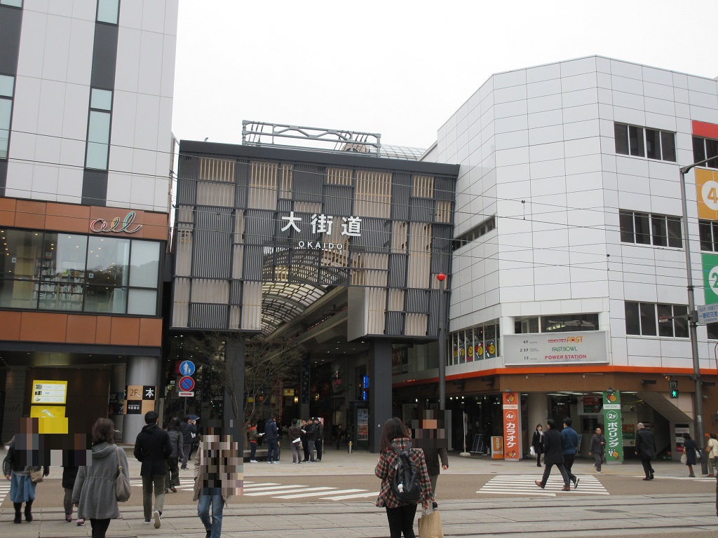 松山城の城下町でも最も繁華な場所といっても過言ではないでしょう。大街道の電停から南側に向かってアーケード街になっていて、横には三越百貨店もあります。飲食店の口コミサイトで評判のお店は、この大街道界隈に集中している感があります。私が松山に滞在した際には雨も多かったのですが、このアーケードのおかげで雨など気にせず買い物がたのしめました。