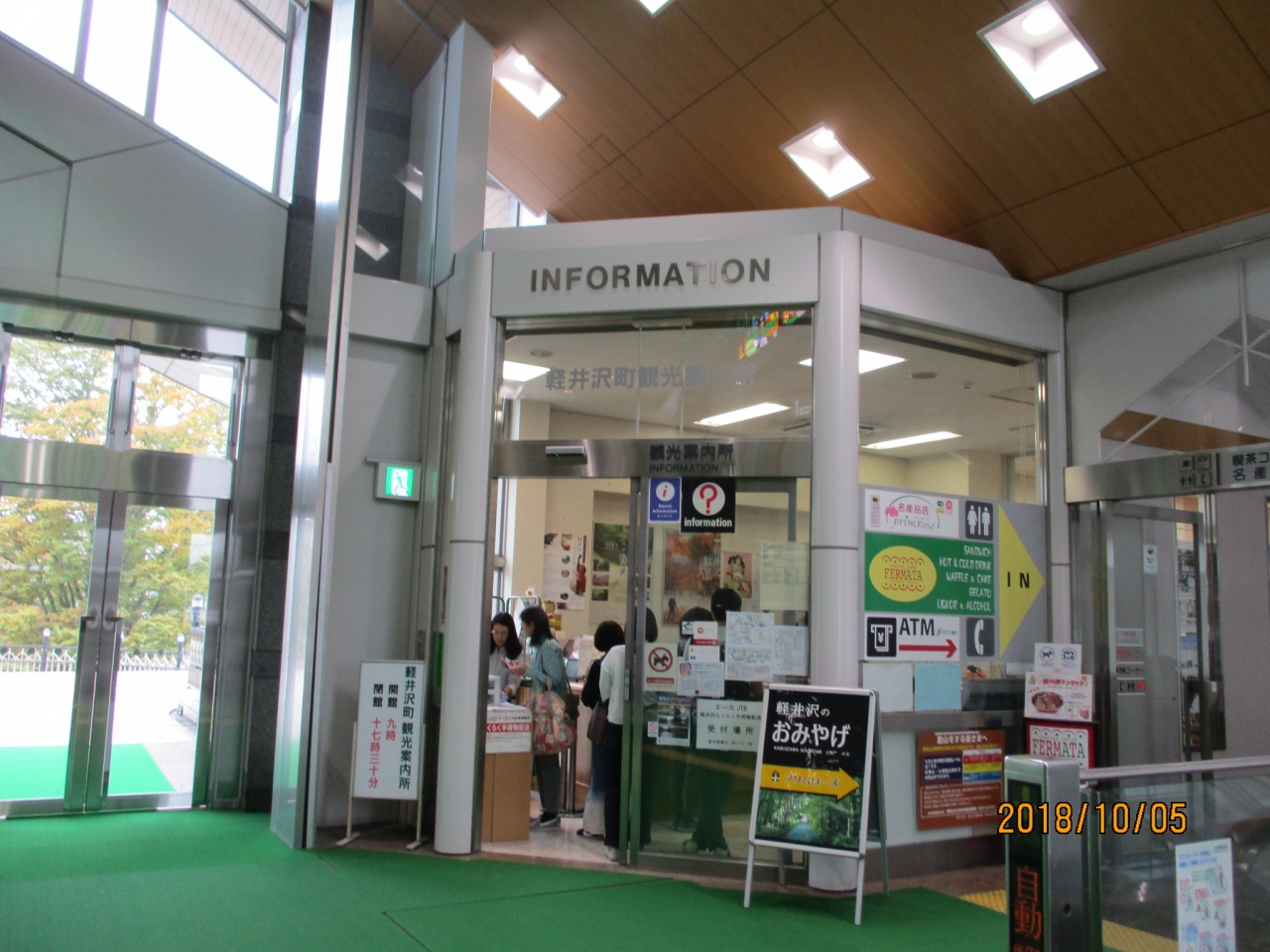 JR長野新幹線としなの鉄道軽井沢駅の構内にあります。軽井沢観光の起点となる駅構内にあるためでしょうか、観光客がひっきりなしに訪れ、人が絶えることがありません。列に並んで順番を待って、観光情報をたずねると親切に受け答えしてくれます。ここで、軽井沢の観光冊子『WelcomeTo軽井沢』をもらっていくと便利です。