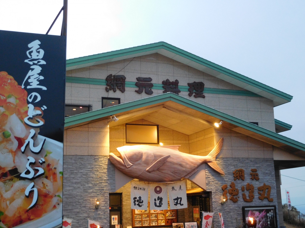 東伊豆道路沿いにあるお店で、直営の売店とお店が分かれてあります。営業時間は昼と夜で分かれているので、夜の営業時間を少し過ぎた頃に行くと、待たずにすぐに席に案内してもらえました。金目鯛の煮魚と焼き魚の両方と、お刺身が頂ける「味くらべ膳」にしました。煮魚の煮汁が美味しく、ご飯をお替りして頂きました。お刺身もとても美味しかったです。人気のお店なので、帰る頃には多くの人が待っている状態でした。また稲取に来た際には寄りたいお店です。