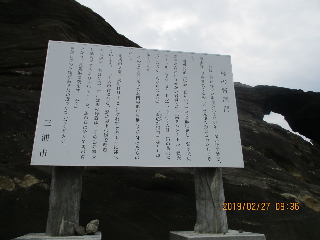 「馬の背洞門入り口」という案内板があるので、そこから山道