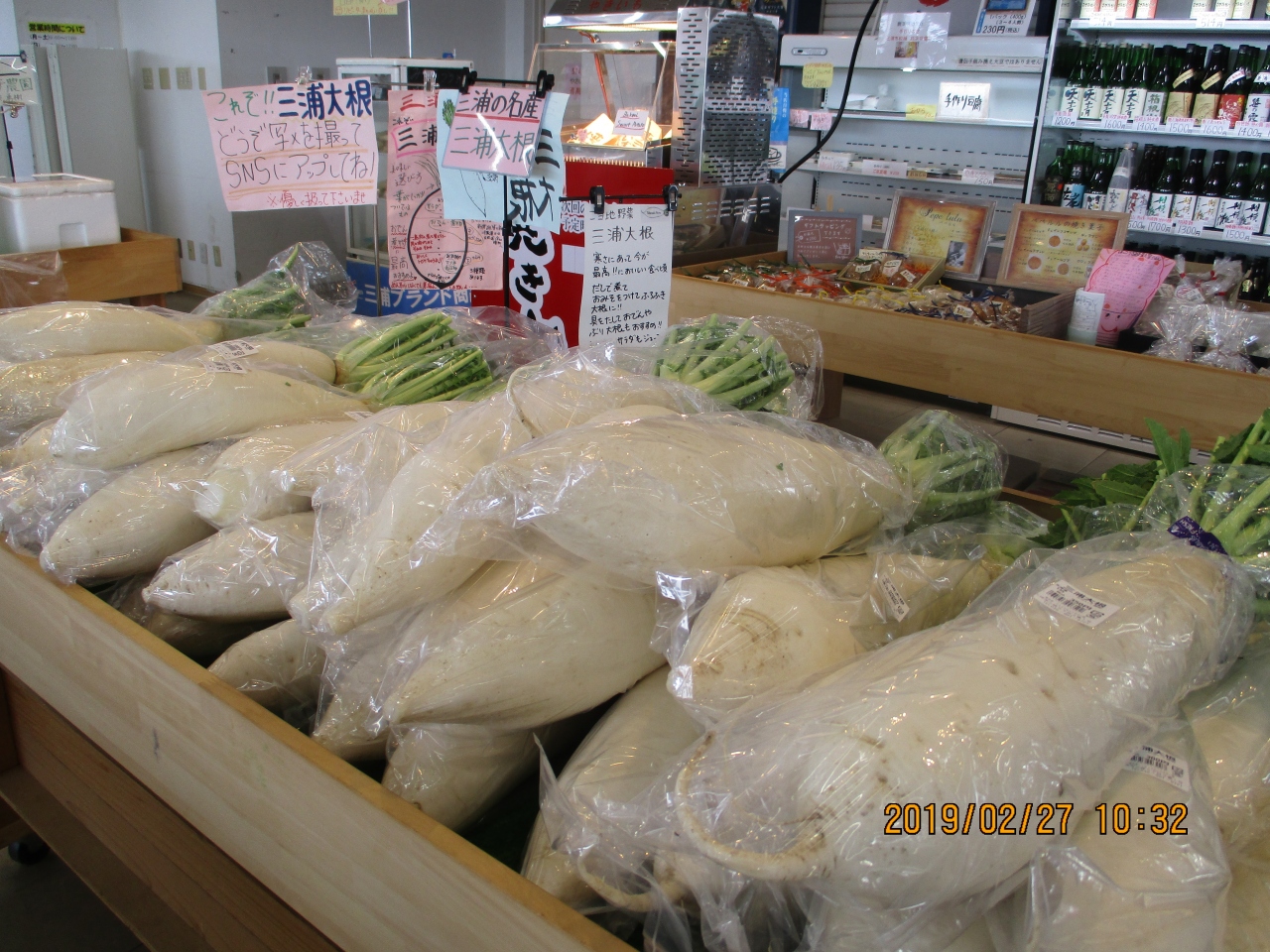 で三浦大根などの地物野菜が販売されていて、カフェも