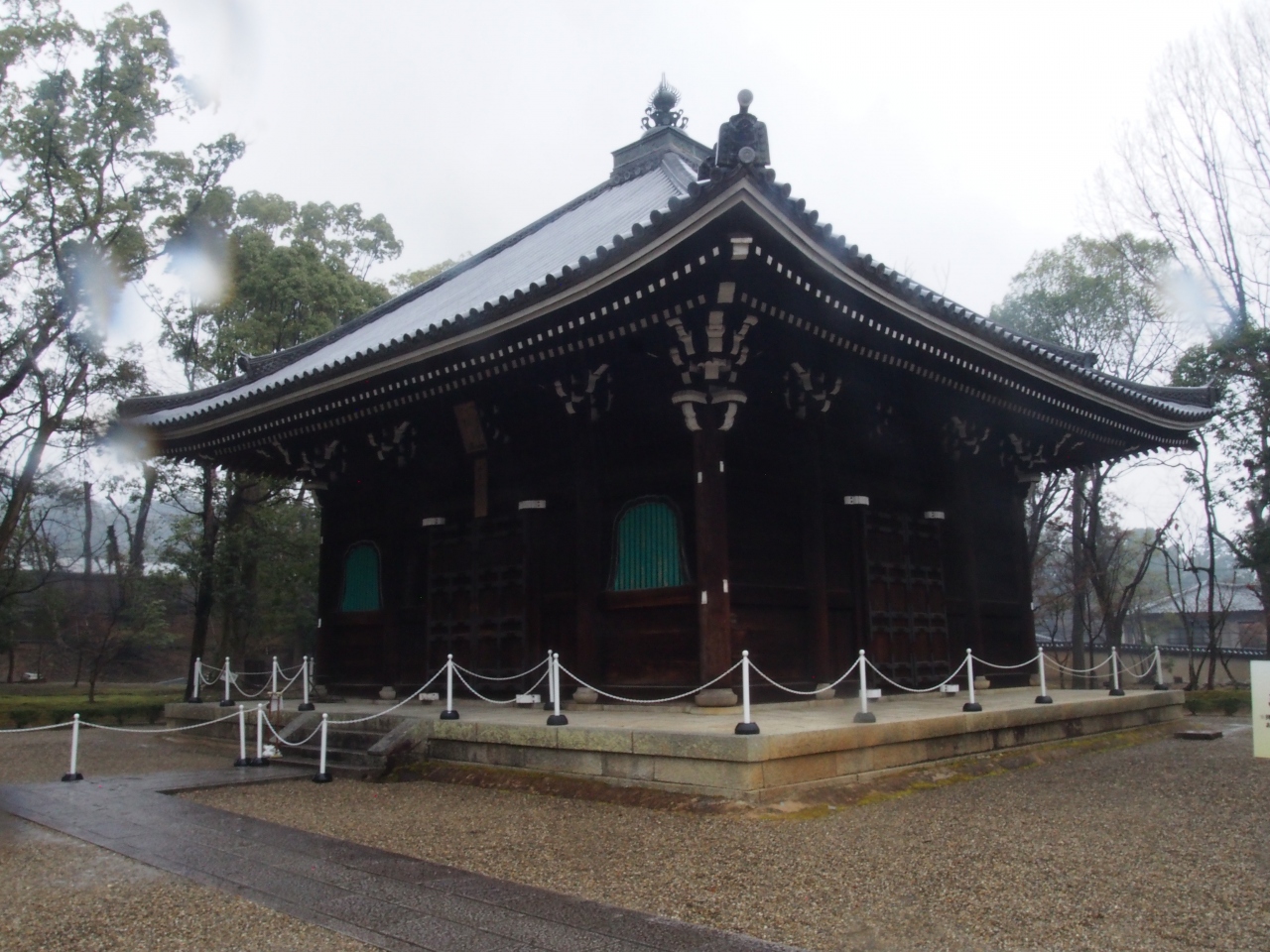 仁和寺の境内の北の端にあり、金堂に向かって右側に経蔵はあります。金堂とは20メートルほど離れて建っています。経蔵の外観は歴史などを感じさせるもので、江戸時代に建てられた禅宗様式の建物です。経蔵という名前のように経典、仏教関係の本などが保管されています。特別な公開をのぞき一般公開はされていないようです。