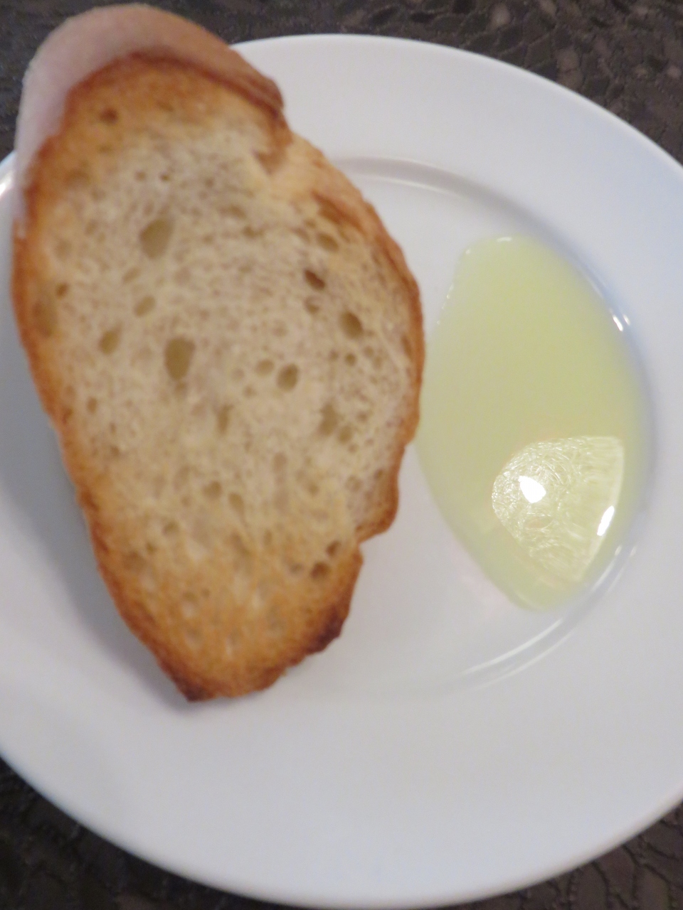 パンも焼き立てのアツアツ、テーブルに添えられたレモン風味のオリーブオイルかけると爽やかな風味プラスしてくれます