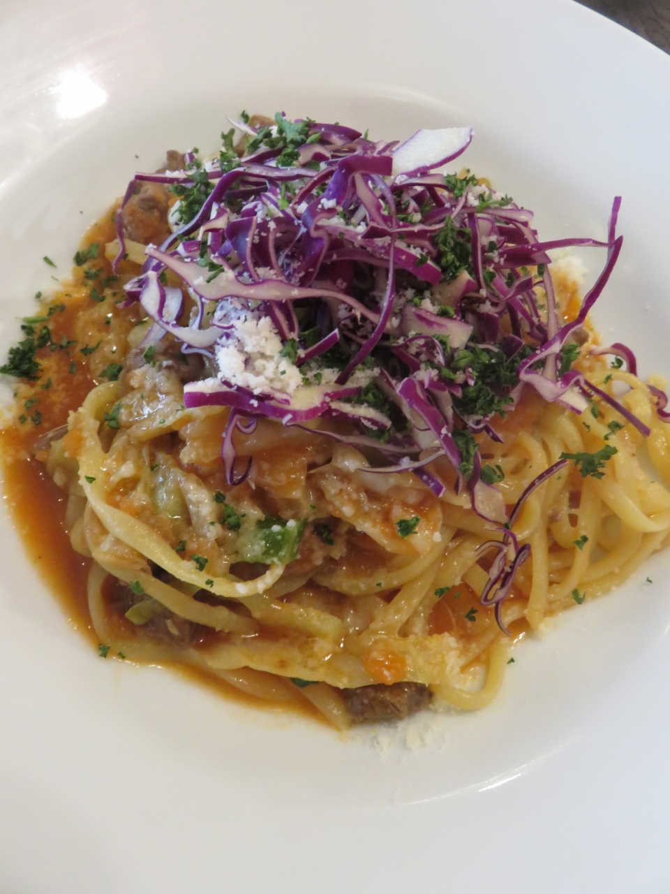 もっちり生パスタも細めであっさりと、ニンニク効いていてソースとの絡み具合がいい感じ