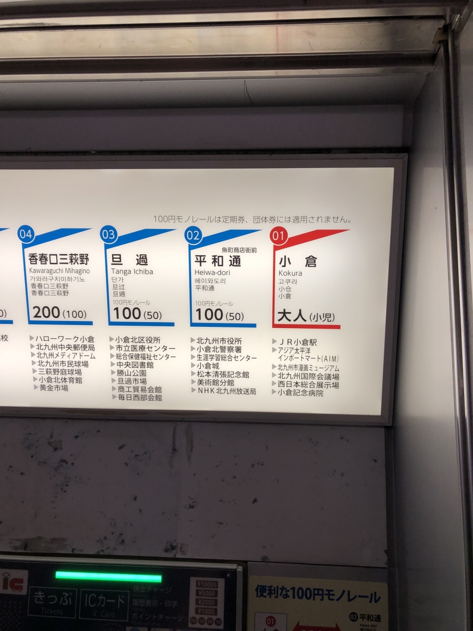 JR小倉駅の中央改札を出ると、改札前の駅舎内の広場にモノレールの小倉駅がある