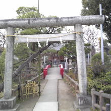 碑文谷公園の中にある池に浮かぶ、小さな島の上に建つ神社です。