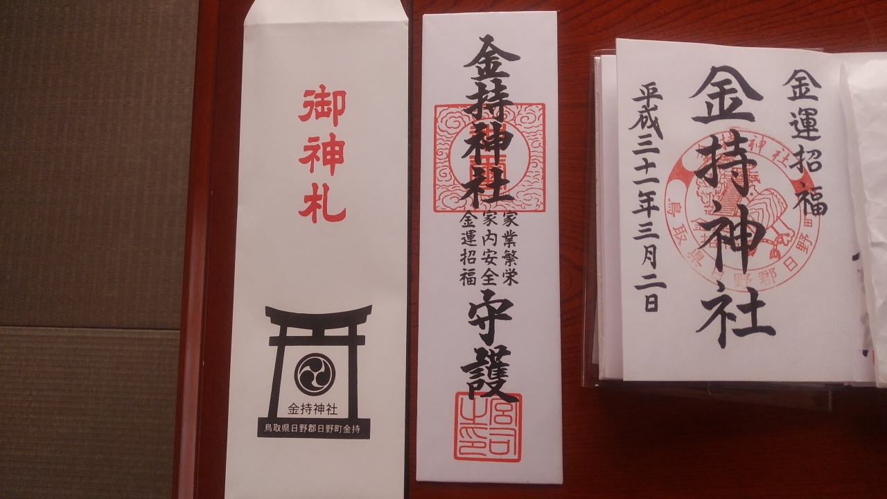 今日は早朝に出発して鳥取県日野町にある金持神社を目指しました。呉・東広島バイパス経由尾道自動車道・山陰自動車道を通り、途中有名な山芳亭で昼食後、江府IC下車して181号線を20分走行し金持神社礼所売店観光物産館隣の駐車場へ午後13時に到着。既に駐車場は20台くらい駐車していました。礼所右にある橋を渡り参道を通って行くと鳥居があり、45度程の傾斜のある階段を登ると神社があります。この金持という地名は、全国に広がった金持一族発祥の地で「かもち」と呼ばれ「金持」の漢字があてられ、藤原性の金持党が生まれ、鎌倉時代初めに金持広広親が守護職となり、砂鉄を背景に勢力を拡大し、国宝・太刀「童子切安綱」で知られる日本最古の刀匠を輩出しているそうです。神社内には立派な龍神の額があり、御朱印と金運招福のお札を購入して参拝。帰りには駐車場にある売店で金福福入れと「棚からぼた餅」(この売店にしか売っていないそうで、これを食べて宝くじ1等が当たったと口コミがありました)を購入しました。また売店と神社近くには金持のルーツゃ開運伝記や奉納された絵馬や寄せ書き帳にはお礼参りに来られた方の喜びの声が多く記入されていました。