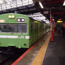 伏見稲荷を観光して稲荷駅から奈良に行こうと電車を待っていたら昔の山手線みたいな随分と懐かしい感じの電車が来て一瞬びっくりしました。