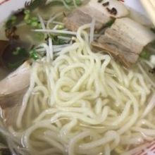 麺はストレートな中太麺でやや柔めな感じで噛むもグニュっとしたコシとモチモチした所があって美味しいです。
