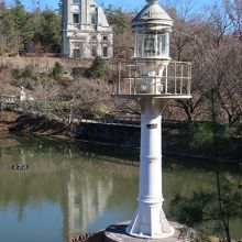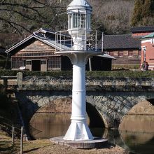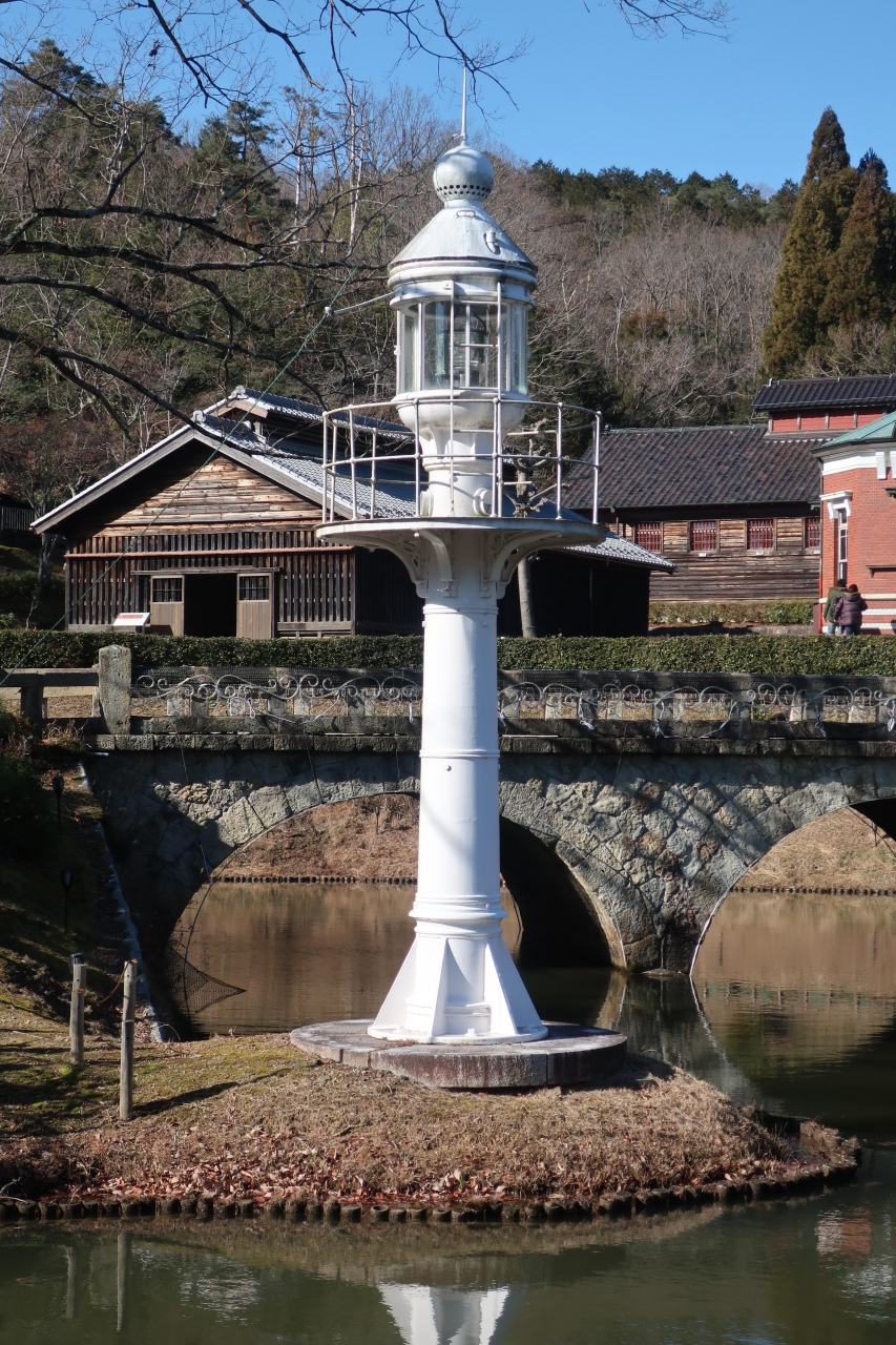明治村5丁目の中央近くにある池に掛かる天童眼鏡橋の袂に小さな燈火台の様な建造物があります。これが小那沙美島燈台です。広島の宮島近くの小さな小那沙美島に明治37年に建造された燈台で、燈火が回転する一般的な燈台とは異なります。燈台と言われなければ見逃してしまいます。燈台についてはよく知りませんが登録有形文化財に指定される貴重な燈台だそうです。