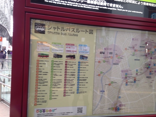 金沢駅の東口を出るとすぐにあるバスターミナルで、たいていの観光バスはここのバス停を出発するので、バスを乗る方は一度は通る場所です。シャトルバスルートのマップや行先の表示は観光客には分かりやすいです。兼六園シャトル行きには行列ができていました。