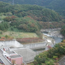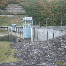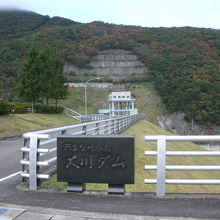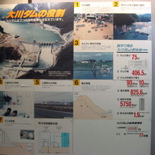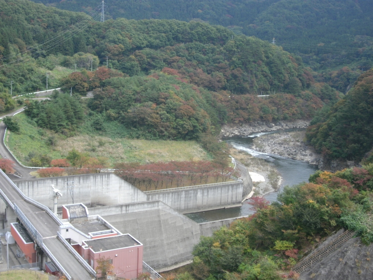 このダムから数km離れたところに大内ダムがあって、大川ダムが下池、大内ダムが上池となって、その落差を利用して下郷発電所で最大出力100万kWの揚水式発電をおこなうという珍しいダムです。ダムサイトには、大川ダムの役割や寸法・構造、大内ダムや導水管の位置、揚水発電について説明した表示板があるのでダムの詳細が判りやすかった。ダムを見学した後、ダムサイト右岸にある管理所を訪れてダムカードを頂くことができました。