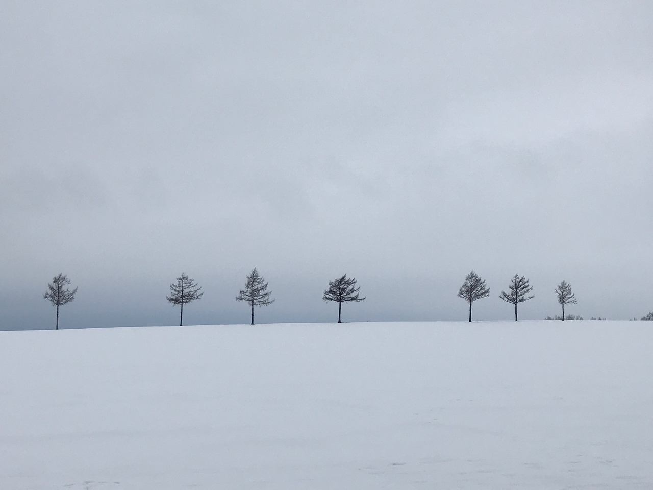 雪景色と並ぶ木がとても綺麗でした。私は良かったですが連れは、ここが本当にメルヘンの丘?この木の先に絶景があるのでは?とここがビュースポットであることを疑っていました。たしかに、車でみつけようとすると間違って通り過ぎてしまうような普通の丘でもありました。