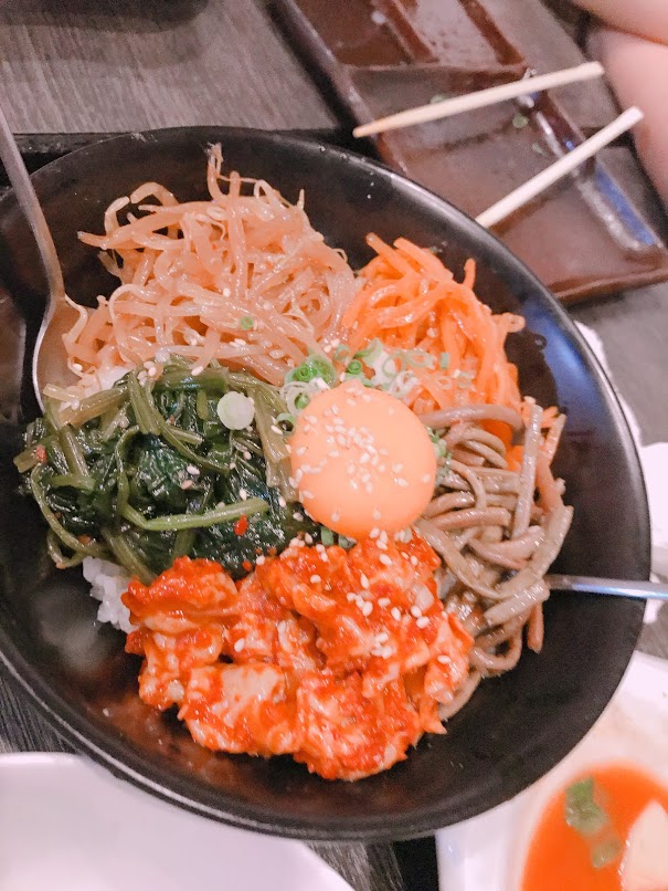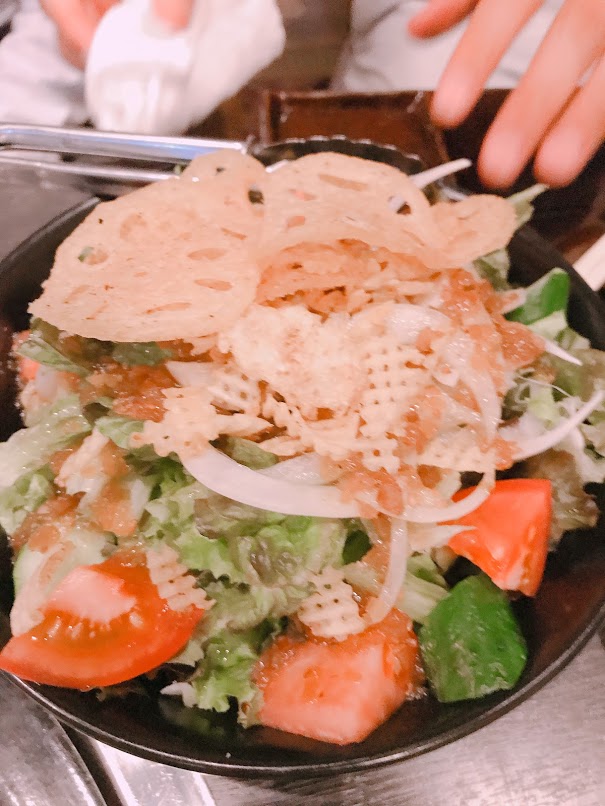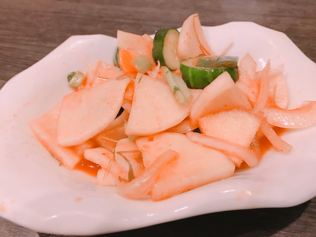 これにキムチ、焼き野菜、サラダ、鳥の唐揚げ(?)、〆にビビンパと冷麺(だったかな)というお腹満足のメニューでした。