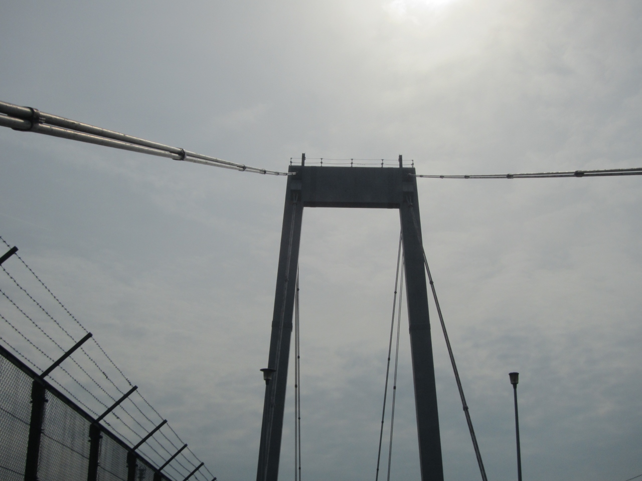 サービスエリアの案内所で、「向島に行くには、尾道大橋出口で出て、尾道大橋を渡るのがいいですよ。」と教えてもらいました。橋の上からは並行して架かっている新尾道大橋の美しい姿と尾道水道の景色が見えてよかったです。向島に入ると、国道が渋滞していました。
