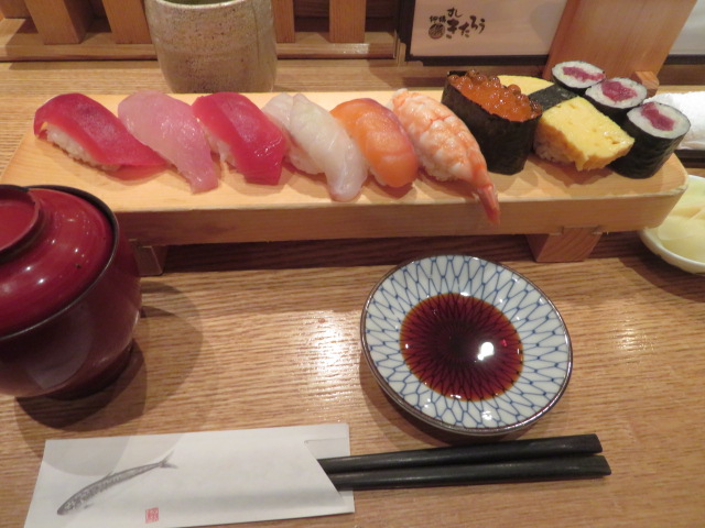 名古屋駅に近い柳橋市場にある寿司屋さんです、築地玉寿司の系列店です、お得なランチタイムに行きました、今回にぎり(お椀付き・1058円)を食べました、他に海鮮寿司などもありました、13時ちょっと過ぎでしたがほぼ満席でした、美味しいにぎりを食べることが出来ました。