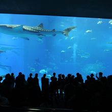 ベビーカーでの幼児連れには混雑している館内を進むのは大変でした。抱っこ紐の方が便利かも。外国人のお客さんが本当に多くて驚きでした。また外にある無料で見られるオキちゃん劇場でやるイルカショーはおすすめです。他にも海ガメなども見れるので、すぐ飽きてしまう小さい子には無料エリアで十分かもしれません。