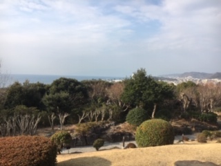 展望台からは、大磯ロングビーチなども見え視界がひらけています。落葉樹の葉が落ちた樹々も乙なものです。冬も悪くありません。