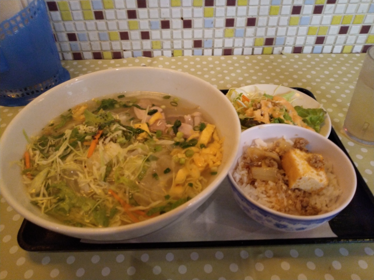 GINZA5の地下1Fのグルメストリートにあるベトナム料理屋さんです。ランチに利用しました。フォーとミニどんぶりとサラダのセットです。フォーはたっぷりですがあっさりいただけるのが良いですね。たっぷりのがいい香りでした。