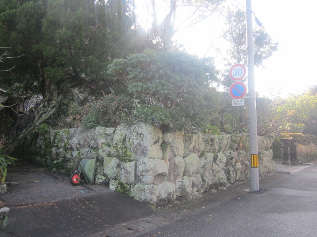 付近の住宅と比較すると、石垣などに囲まれた風情が如何にもという感じなので、近くまで来るとすぐに判るかと思いますが、一応、一般のお宅の私有地となっていますので、内部見学は通常は難しいかなという雰囲気です。ただ、道路沿いに石垣の遺構などを眺めるだけでも、十分に立派な邸宅の風情は味わえるかと思いますので、見る価値はあるスポットといえるでしょう。