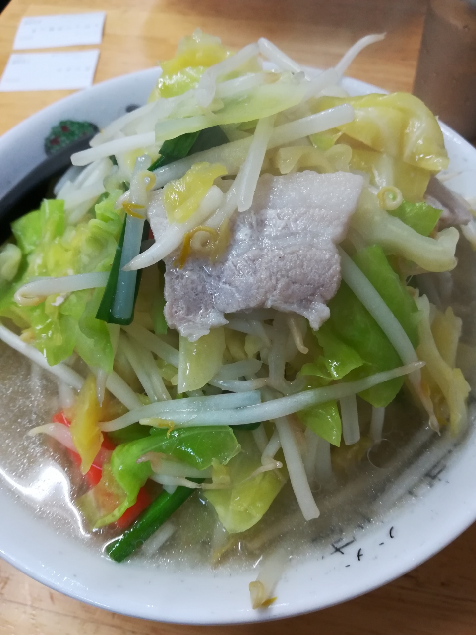 塩味が強めのタンメンは、面も独特の平面でうまかったです。野菜たっぷりでいいですね!