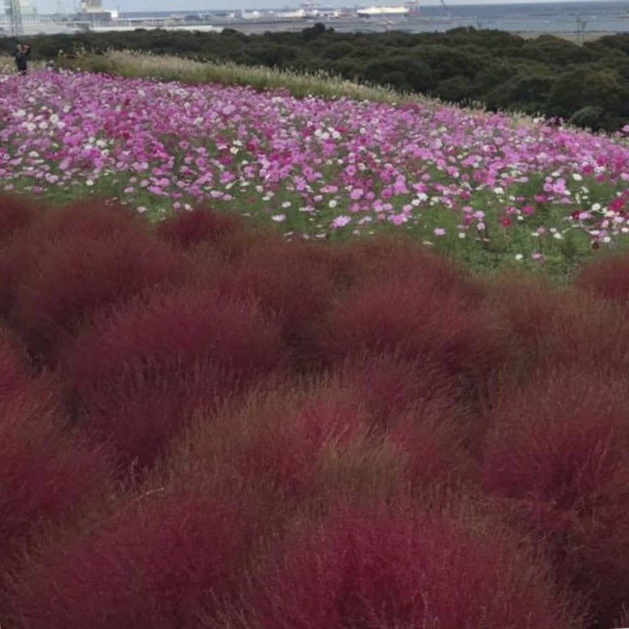 茨城県にあるひたち海浜公園です。去年の秋に行きました。休日だったので、結構混んでいました。赤色のコキアとコスモスが見事に咲いていました。想像以上の見応えで、とても感動しました。広いので一日中楽しめます。