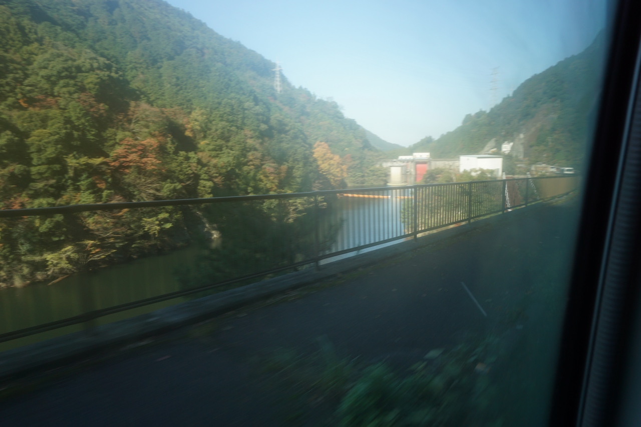 別子の湖は、マイントピア別子から東出ゾーンに向かうシャトルバスで通ります。小女郎川に建設された鹿森ダムによってできた人造湖。山あいにけっこう細く続いていて、道沿いにしばらくの間、景観を楽しめる。別子ラインの見どころの一つでしょう。