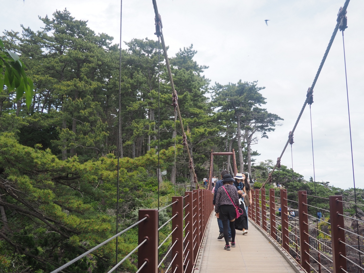 城ケ崎海岸は歌にもなっていますね。吊り橋から望む相模湾の風景が綺麗な場所です。いつり橋に一番近い駐車場は、30分以内は無料で、吊り橋だけ行くなら十分ですね。エクシブ伊豆のチェックインの時間調整によく利用していましたね。