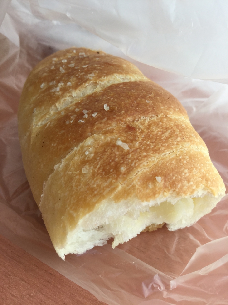 中が空洞なので、バターを入れた形跡はあれど、バター足りない。91円だからやむなし。塩はトップに乗せられており、口の中でやたらと塩味を発揮。