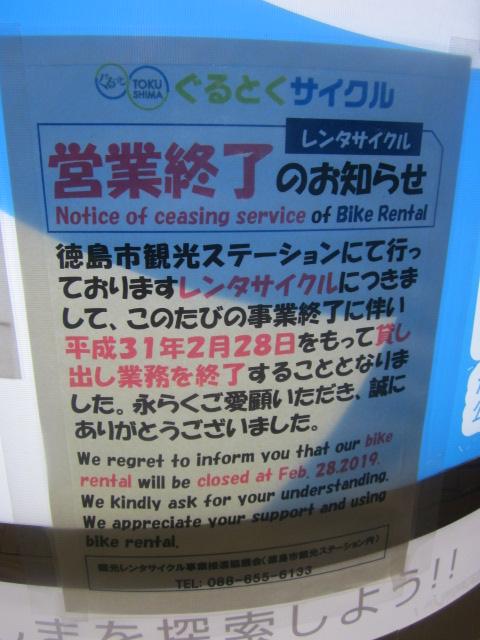 高知の方では、電動までがなんと無料で借りられてしまうという、レンタサイクル王国ぶりを感じた一方で、徳島のレンタサイクルは何と最近営業終了してしまったとのこと、どうやら、管理母体と色々あったようですが、徳島市内はレンタサイクルで巡るのにはとても便利な町だと思うので、とても残念に感じました。
