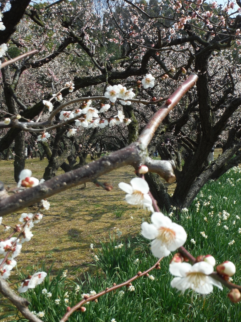 3月の上旬に岡山市の後楽園に行きました。満開を通り過ぎて終わりかけの花でしたがピンクや黄色、白など花の色も違ったものが咲いていて綺麗でした。約100本あるそうです。梅の木の下の歩道側には水仙も植えていて水仙の花も一緒に楽しめました。